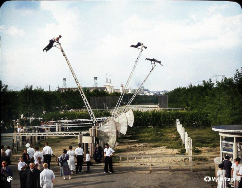 Аттракцион «Летающие люди» в Парке Горького 1937 год