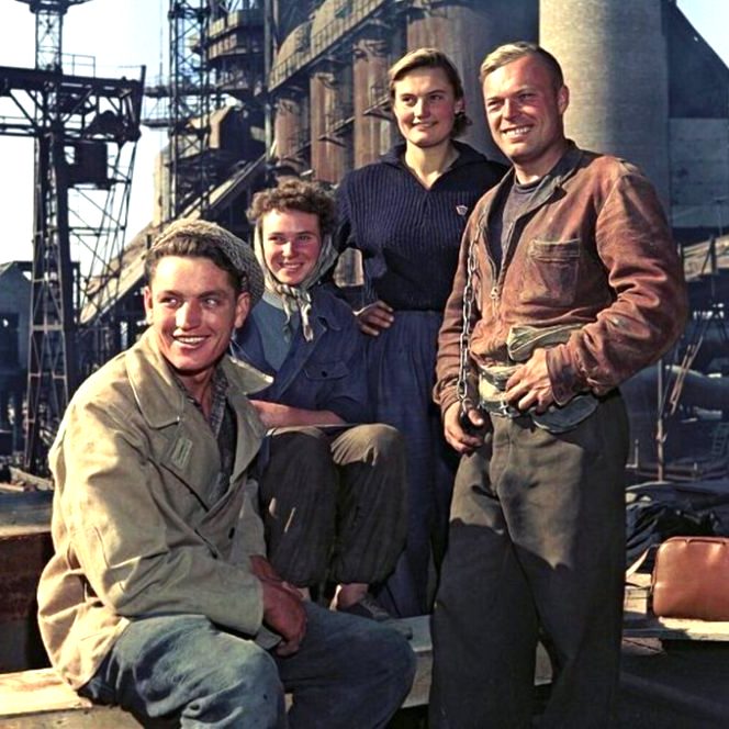Металлургический завод имени Ильича. Передовые строители доменной печи «Ждановская-комсомольская». Николай Козловский, 1958 год, Украинская ССР, Донецкая обл., г. Мариуполь, МАММ/МДФ.