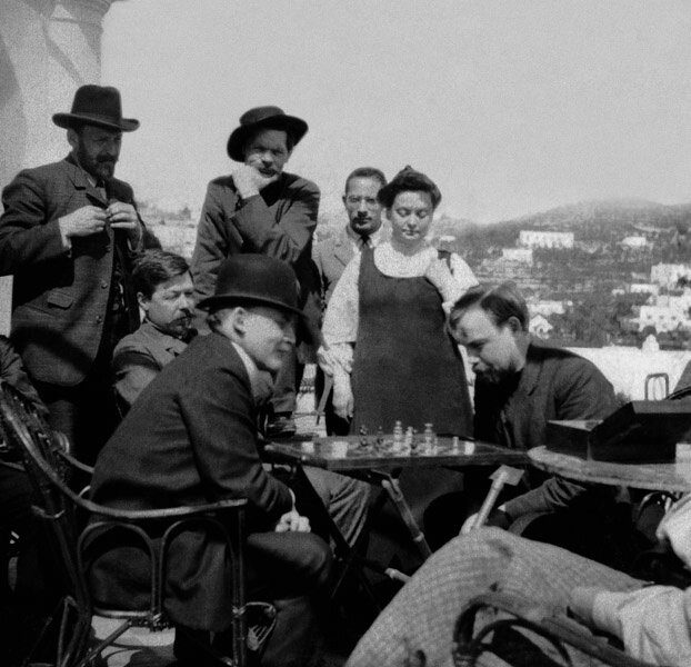 Владимир Ленин в гостях у Максима Горького на острове Капри. Неизвестный автор, апрель 1908 года, Италия, о. Капри, Российский государственный архив социально-политической истории.