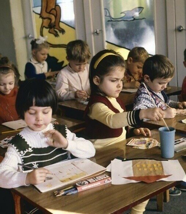 1. Дети на занятиях по рисованию. Да в нашем детстве не было модных гаджетов, наша жизнь была проще и бесхитростней. Было больше общения вживую, больше общих игр.