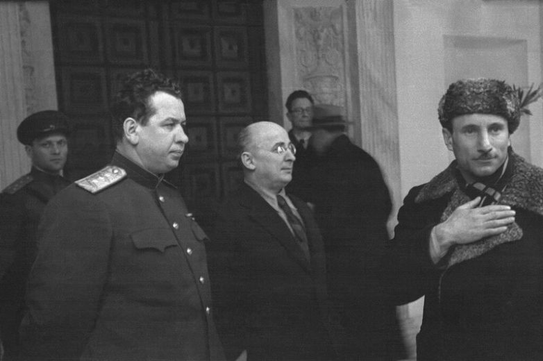 1-й заместитель наркома внутренних дел СССР Сергей Никифорович Круглов, народный комиссар внутренних дел СССР Лаврентий Павлович Берия, режиссер Сергей Герасимов.