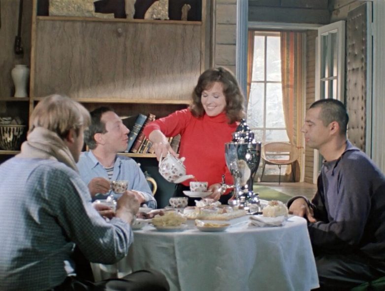 Понятно, что показанная в фильме дача – не примитивный огород, а место отдыха. Подтверждением этого служат, в том числе, книги в богатых переплетах на заднем плане. Ведь книги в те времена представляли особую ценность.