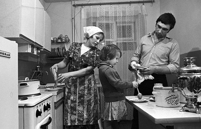 Советская женщина была не только хранительницей семейного очага. Ей нужно было трудиться на производстве, принимать активное участие в общественной жизни, воспитывать детей. Чтобы успевать справляться со всеми обязанностями, приходилось крутиться как белка в колесе. Это сейчас девушка вполне может попросить своего мужа о помощи по хозяйству, например, приготовить ужин, помыть посуду или пропылесосить. В Советском Союзе такой подход вызывал массу критику. Попытка переложить домашние обязанности на плечи мужчины считалась позором, а если супруг соглашался помочь, его называли подкаблучником. При этом уйти с работы и заниматься исключительно бытовыми обязанностями ни у кого даже в мыслях не было – такое решение тоже осуждалось обществом.