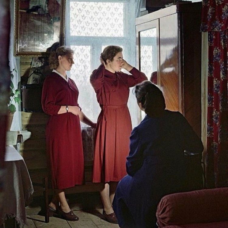 Девушки собираются в клуб. Московская обл. с. Кривцы, 1959 год