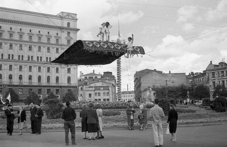Памятник ковру-самолёту из фильма «Старик Хоттабыч», установленный на Лубянке, 1957 год