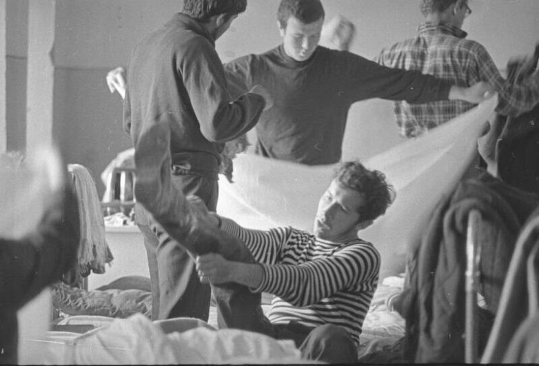 Студенты стройотряда МГУ в общежитии. Всеволод Тарасевич, 1967 год, Архангельская обл., Соловецкий о., МАММ/МДФ.