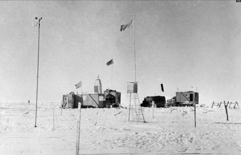 Советская экспедиция под руководством Евгения Толстикова проходила в далёком 1958-ом году. После 16-ти часовой разведки на самолёте, полярников на тягачах доставили на станцию, оборудованную двумя печами, генератором, метеорологическими приборами и антеннами.