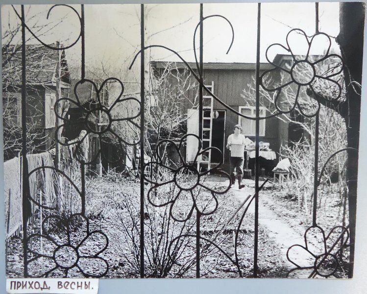 Елена Раевская со своей рассадой. Марина Власова, 1983 год, г. Ленинград, 13-я линия Васильевского острова, из архива Владимира Александровича Карлова.
