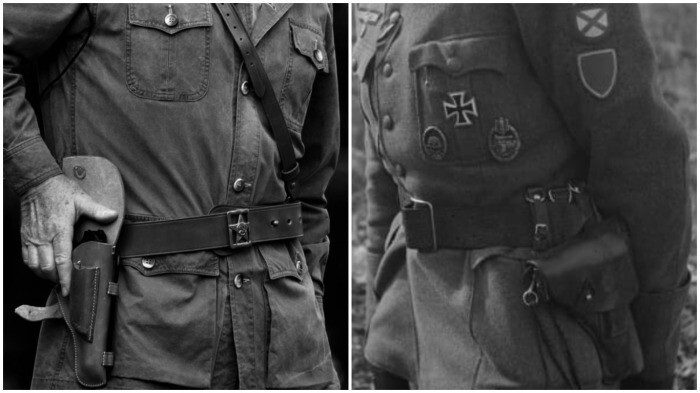 Ни у немцев, ни у русских, кстати, не было никаких уставных правил, где именно носить кобуру, уж тем более в полевых условиях. Во многом всё регулировалось именно воинской традицией.