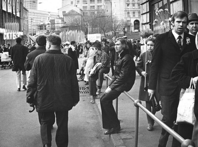 последняя фотка это не 82 год, это уже 90-е. в арке один мужик в бейсболке второй в адидасах. дамочка с пакетом в джинсовой куртке и реклама кодака.