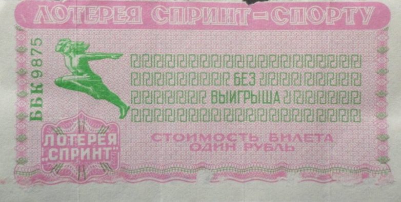 Моментальных лотерей в Советском Союзе было всего-навсего две: одна из них — книжная, вторая — «Спринт». Суть этих лотерей чрезвычайно проста: в отличие от знаменитого «Спортлото», здесь не нужно было ломать голову над угадыванием выигрышной комбинации цифр, а потом заполнять билет да еще ждать тиража, чтобы сверить билет с таблицей, напечатанной в газете.