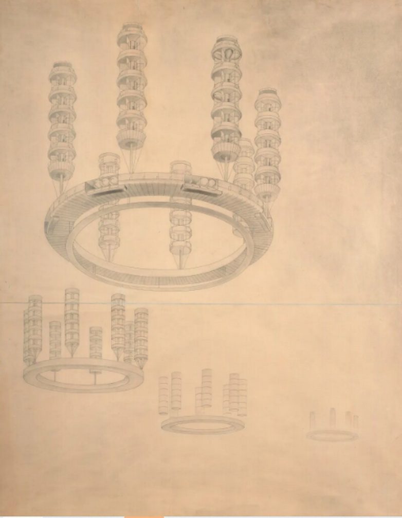 Так как же, по мнению Георгия Крутикова, должны были выглядеть дома будущего? Это могли быть комплексы из несколько высоток, которые парили в воздухе на одной круглой платформе. Внутри платформы могли быть подсобные и хозяйственные помещения, а высотки представляли собой дома-коммуны. Так почему же Крутиков решил поднять жилье в воздух? Тут все очень просто: чтобы освободить землю для заводов и прочих производственных объектов.
