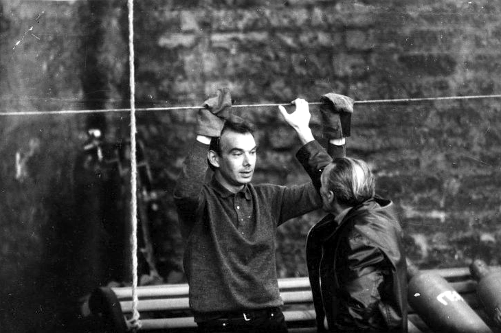 Рабочий момент съемок: актер Алексей Баталов, режиссер Михаил Калатозов, оператор Сергей Урусевский Фильм: Летят журавли. 1957 г.