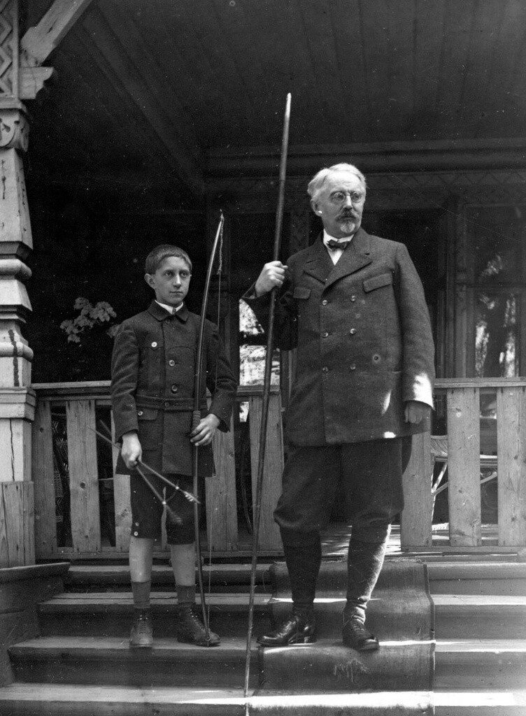 Профессор Альфонс Эрнестович Вормс с сыном Георгием на даче. Июль 1925 года. Московская губерния, станция Ухтомская, поселок Михельсон.