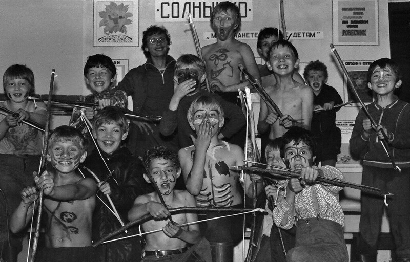 Индейцы из 6-го отряда. Июнь – август 1985 года. Автор: Павел Сухарев. Московская область, Рузский район, деревня Федчино.