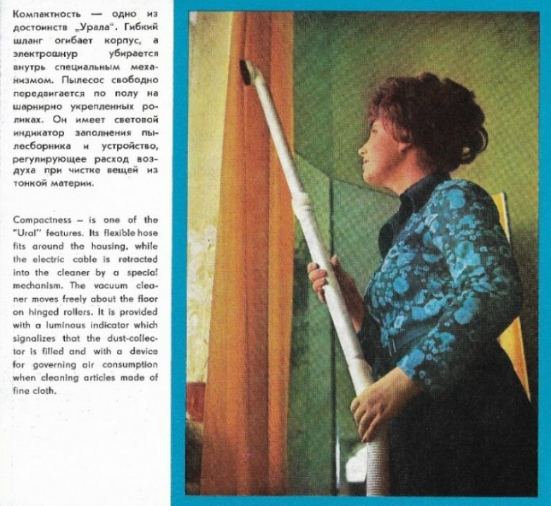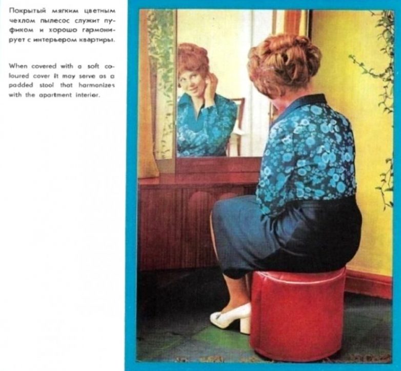 Легендарный «Урал» не отставал от своих собратьев: покупая это тяжеленное (8 кг) устройство, пользователь приобретал одновременно и технику для уборки, и пульверизатор для побелки, и фен для волос, и даже элемент мебели — вполне комфортный пуфик.