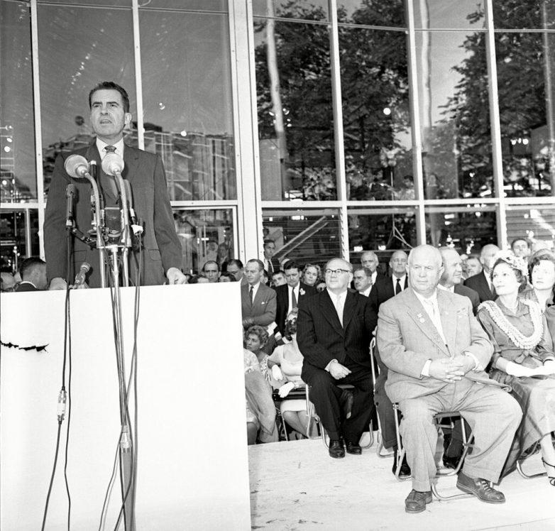 Открытие американской выставки в Москве. Выступает вице-президент США Ричард Никсон. Сергей Смирнов, 25 июня 1959 года, г. Москва, парк Сокольники, ОАО «Газета Известия».
