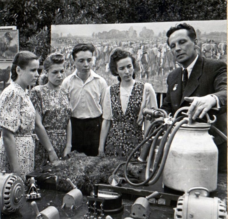 «Пропаганда стахановских методов труда. В течение лета 1950 года в Парке было организовано 3 стационарных и 42 передвижные выставки о стахановских методах труда в промышленности и на транспорте». 1950 год, г. Москва, Парк культуры и отдыха «Сокольники».