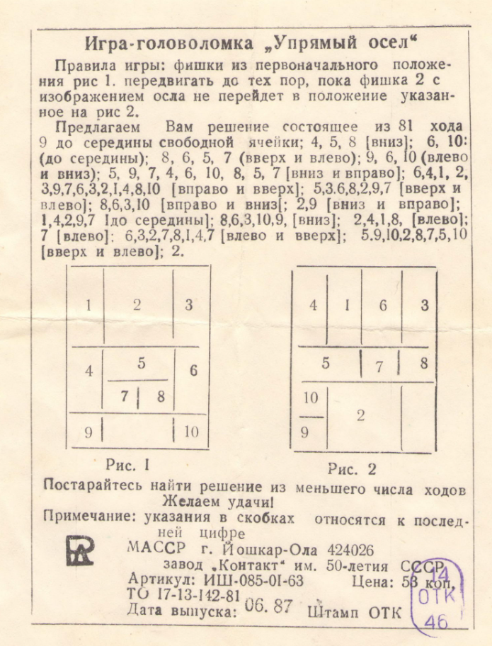 Были «пятнашки».Разобрался на «одном дыхании».Лет 7-8 тогда было.