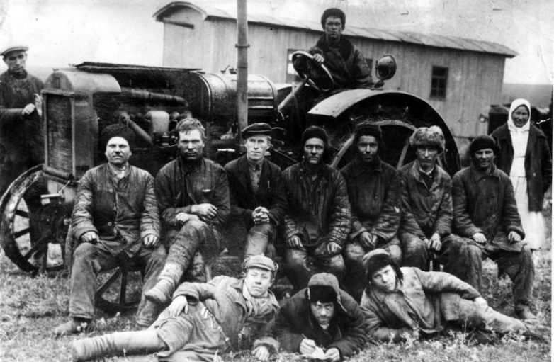 Тракторная бригада с. Чернолесского у трактора «Фудзон», бригадир Ефанов Максим Свиридович