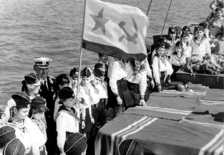 Пионеры школы № 20 г. Керчи перед спуском венков в море.