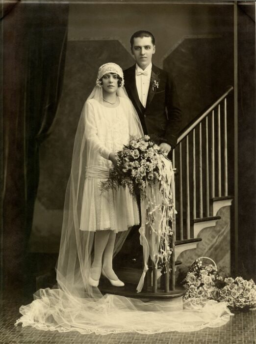 В российской империи свадебные платья назывались подвенечными, что соответствовало церковным традициям. С приходом революции церемонию венчания отменили, и платья, как вид, исчезли. Лишь в эпоху НЭПа недолгий период можно было наблюдать брачующихся невест в белых нарядах, сшитых по заброшенным лекалам прошлого, но вскоре исчезли и они. Молодожены лишились даже процедуры обмена кольцами. Страна переживала непростой период становления нового строя, что сказывалось на экономике и уровне жизни в целом. Как говорится, не до церемониала. А вскоре грянула Великая Отечественная, и народу не во что было одеваться даже буднично. Чего уж там говорить о торжествах.