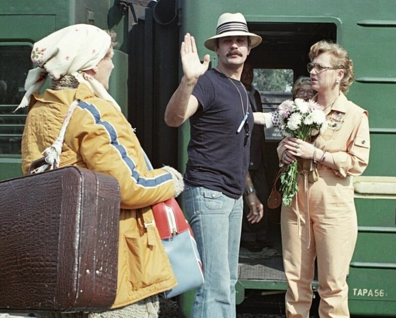Михалков на фоне вагона сразу заставляет вспомнить его проводника-спекулянта «Андрея» из «Вокзала на двоих».