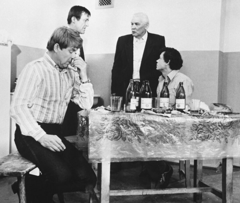 Валентин Гафт, Ольга Волкова, Леонид Филатов и Александр Ширвиндт на съемках художественного фильма «Забытая мелодия для флейты», 1987 год. Фото: РИА «Новости»