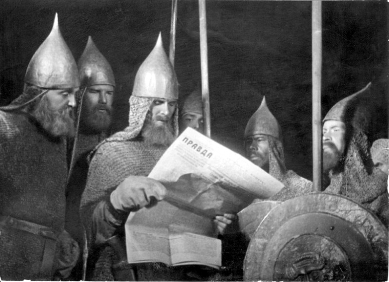 Прыжок во времени — последнее фото.Это как «Янки при дворе короля Артура».Газета «Правда» в средневековье.Так и представляешь заголовок «Тевтонские псы-рыцари уже в Пскове».Предатели открыли ворота города супостатам!!!