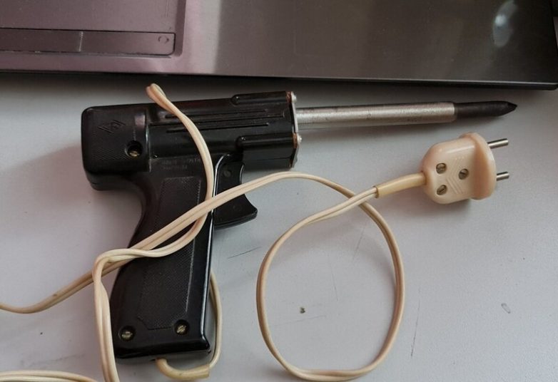 10. Паяльник-пистолет ЭПЦ Ф — начнем с того, что в настоящие розетки его не включишь. Это термонагруженный прибор. Практика показывает, что паяльники с постоянной работой чаще перегорают, а если повезло и нить попалась волшебная и за 30 лет не выгорела, то высох и выгорел карболит в местах крепления. Если же лежать ему все время в промасленной бумаге — сносу этому паяльнику не будет.)))