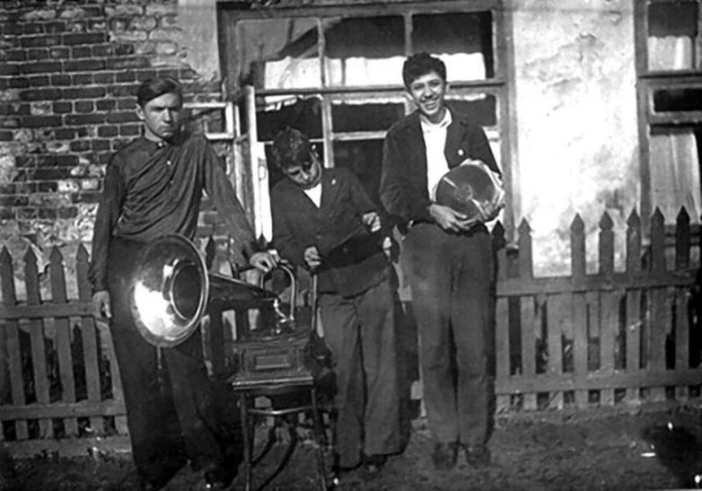 удивительно что с граммофоном, а не с патефоном