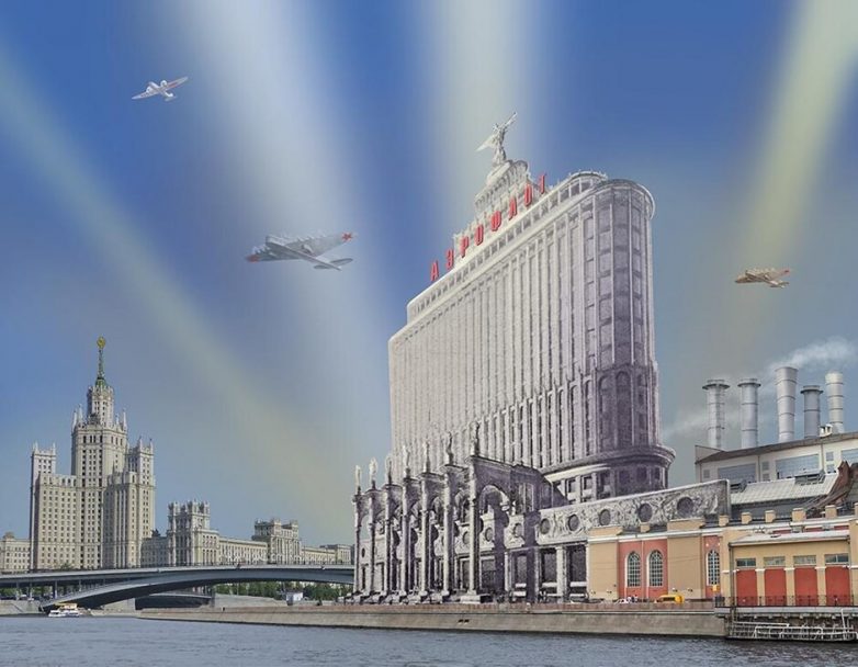 А вот Дом Аэрофлота, который планировали возвести ещё в 30-х годах, должен был стать неким памятником советским героям-лётчикам. Именно такое здание аэродинамической формы должно было появиться рядом с Белорусским вокзалом. Несмотря на то, что сам проект не был реализован, его наработки решили применить при строительстве здания Правительства.