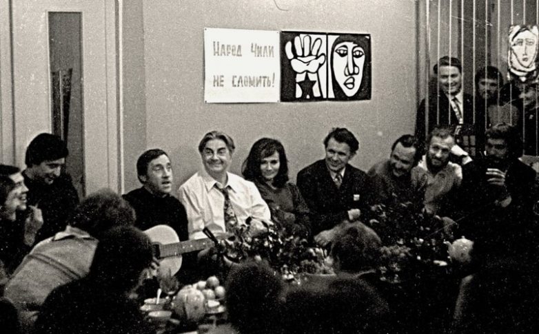 9 октября 1973 года. Алма-Ата, Институт ядерной физики АН Казахской ССР. Леонид Филатов, Валерий Золотухин, Вениамин Смехов, Владимир Высоцкий, Юрий Любимов, Зинаида Славина, Николай Дупак, Борис Глаголин, Анатолий Васильев и Борис Хмельницкий.