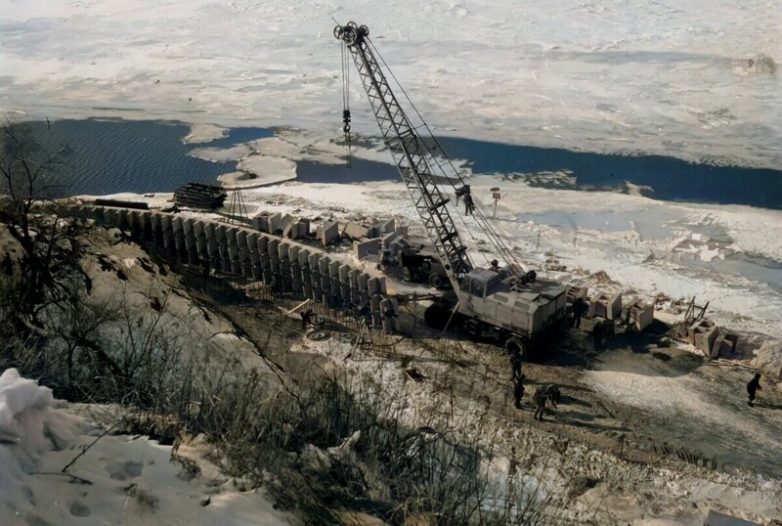1980 год. Строительство набережной р. Амур в районе Утеса. Автор: Петров А.С.