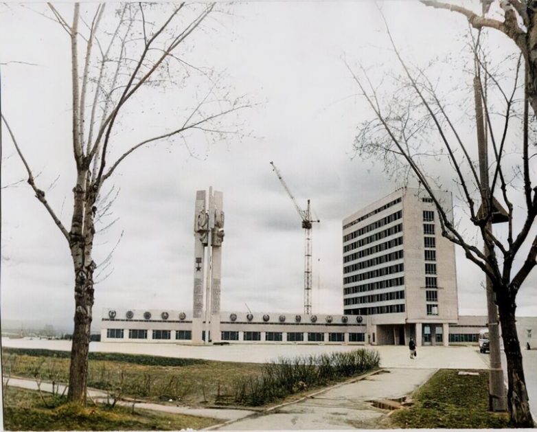 Строительство здания Дома радио, 1979 год. Стела героев и строительство здания Дома радио на площади Славы.