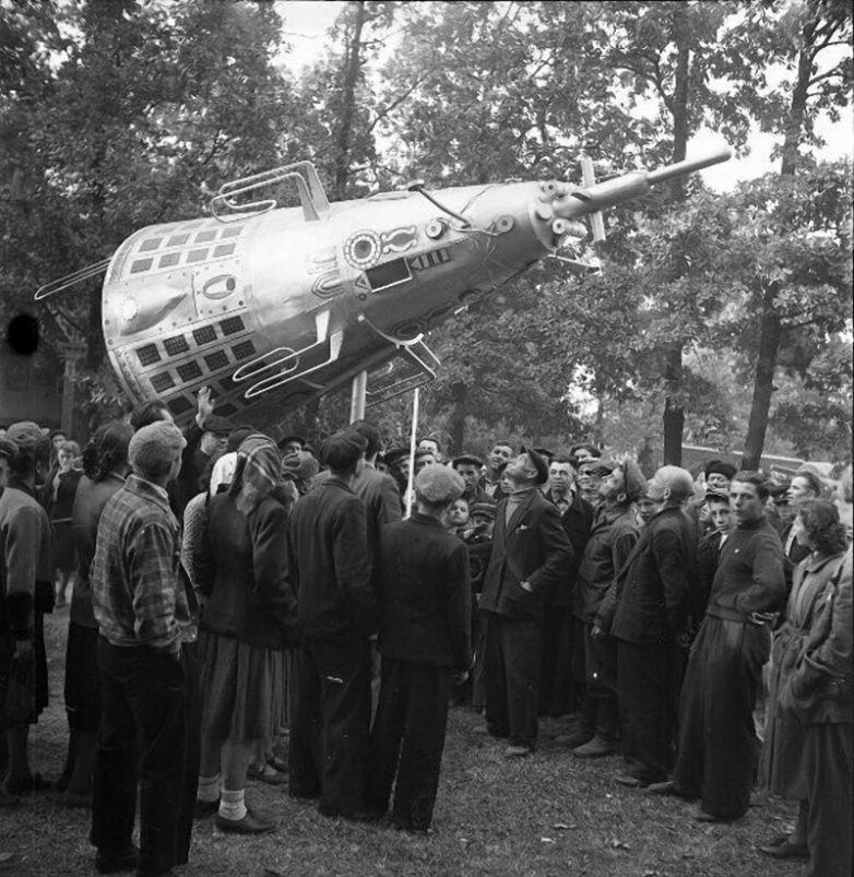 На выставке достижений Харьковской области. У модели советского искусственного спутника Земли «Спутник-3».