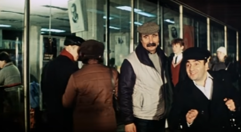 А мужчина рядом с Татьяной Васильевой, которая в оранжевой шляпке, это сценарист и режиссер Анатолий Эйрамджан. В 90-е годы он сам снимет Татьяну Васильеву аж в четырех фильмах.