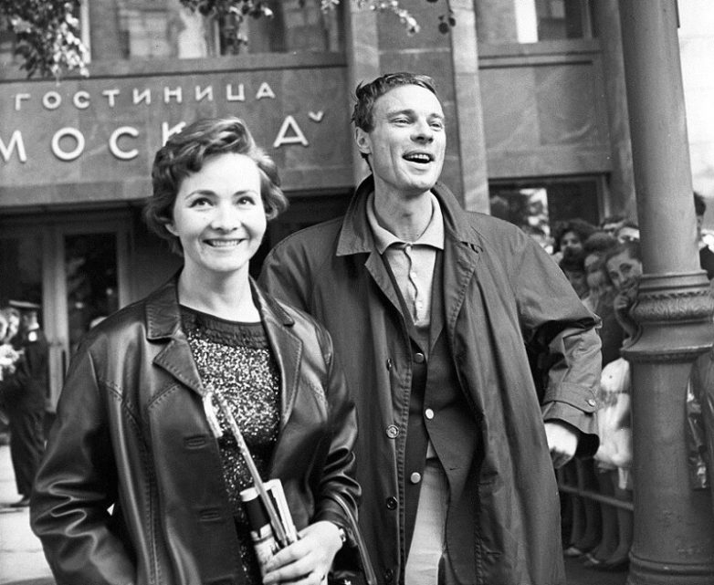 Советская киноактриса Маргарита Володина и немецкий киноактер Томас Хольцман у гостиницы «Москва», 1965 год. Фото М. Озерского / РИА Новости