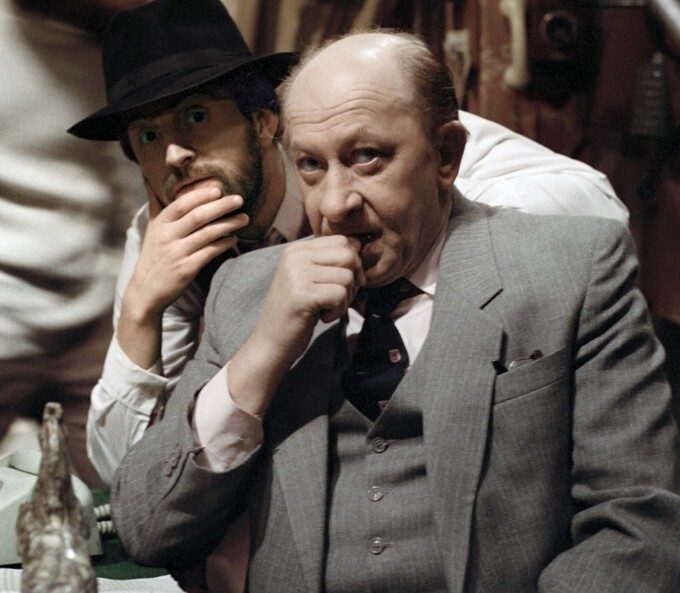 Евгений Евстигнеев и Леонид Ярмольник на съемках популярного телесериала «Игра в детектив», 1988 год. Фото: РИА Новости