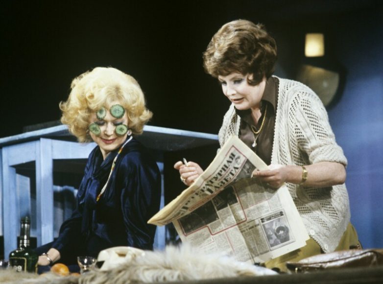 Светлана Немоляева и Татьяна Доронина в сцене из спектакля «Она в отсутствии любви и смерти», 1981 год