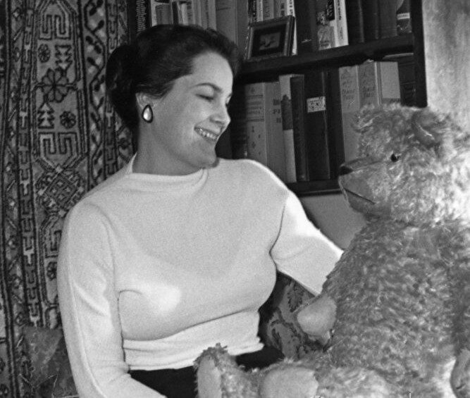 Людмила Марченко в окружении игрушек, 1960 год