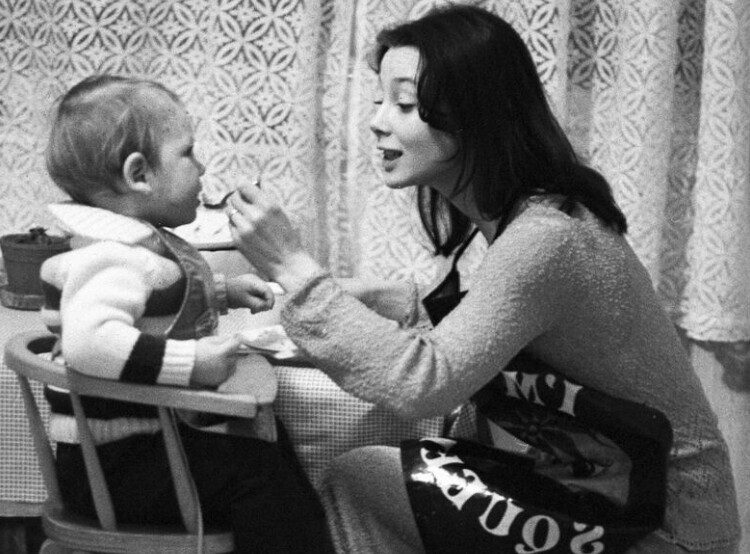 Галина Беляева кормит сына Эмиля, 1982 год
