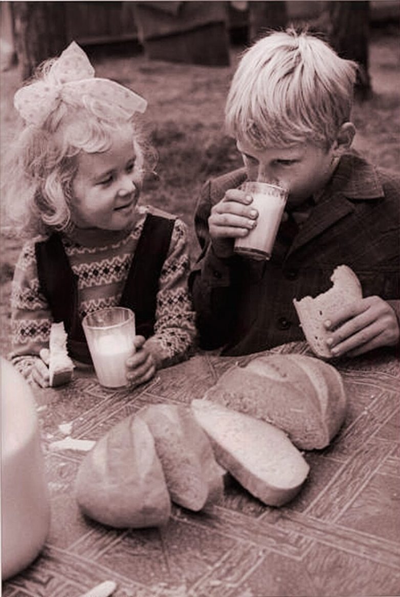 Обед в поле на посевной. 17 мая 1979 года. Автор: Владимир Соколаев. Кемеровская область, Новокузнецкий район.