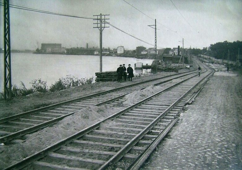 Тянули эту линию далеко — в деревню Мурзинка и село Рыбацкое. Это фото сделано там, где сейчас над проспектом Обуховской Обороны нависает Вантовый мост.