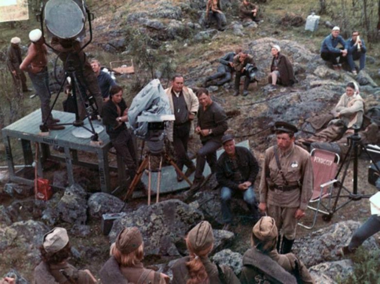 На съемочной площадке фильма «…А зори здесь тихие», 1972: