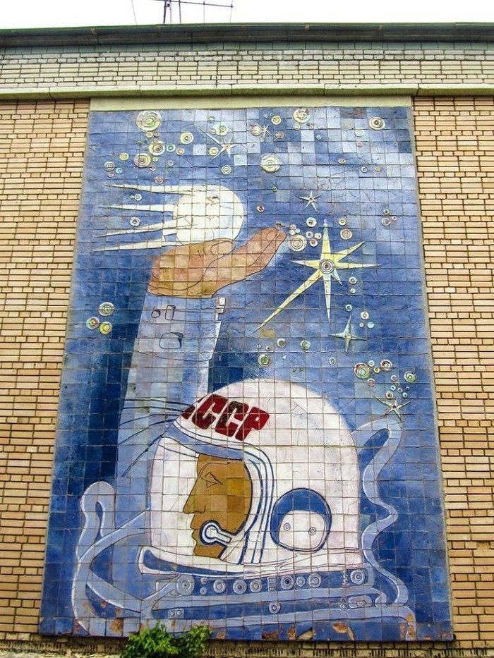 Мозаика на фасаде одного из корпусов заброшенного детского лагеря. Красноярский край.
