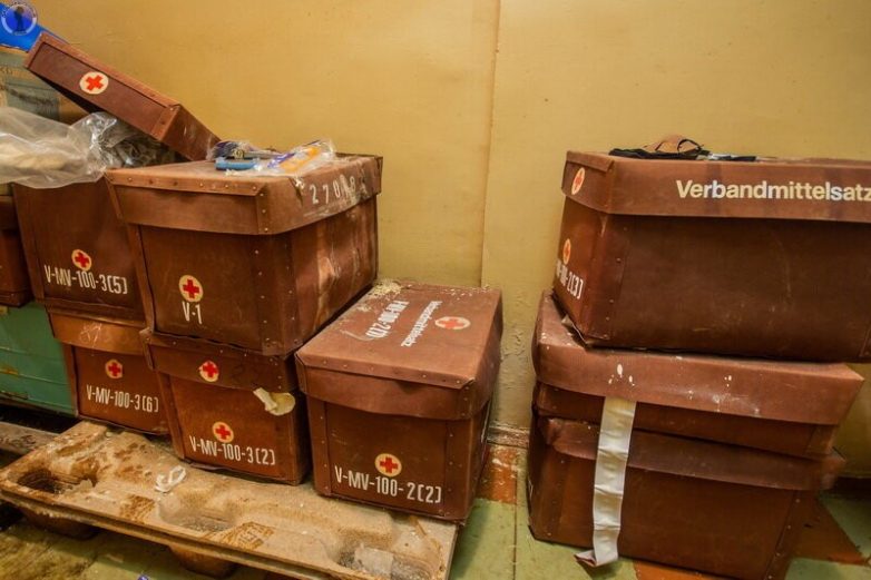 Внутри были серьёзные запасы медицинских инструментов и медикаментов. Здесь они сохранились ещё с советских времён и произведены в теперь уже не существующей ГДР.