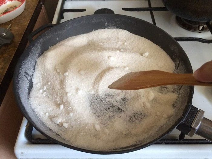 Увы, если сковорода сделана не из чугуна, она очень быстро приходит в негодность. Год-два, и посуда начинает пригорать, что существенно усложняет процесс приготовления пищи на ней. Однако советские хозяйки знали, как спасти испорченную сковороду. Они хорошо промывали ее вместе с содой, затем насухо вытирали тряпкой и ставили на плиту. После этого в посуду насыпали соль, чтобы она полностью покрыла дно, и прокаливали на среднем огне около десяти минут. По истечении времени соль высыпали со сковороды в отдельную миску, вытирали дно и стенки влажной тряпкой и возвращали на средний огонь, предварительно обработав растительным маслом всю внутреннюю поверхность. В конце сковороду снимали с плиты, давали остыть, после чего промывали теплой водой и высушивали. После этого ею смело можно было пользоваться по назначению – еда не пригорала.