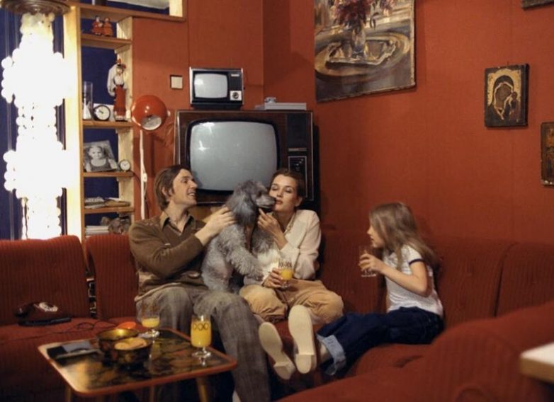 Ирина Алферова и Александр Абдулов с дочерью Ксюшей дома, 1984 год