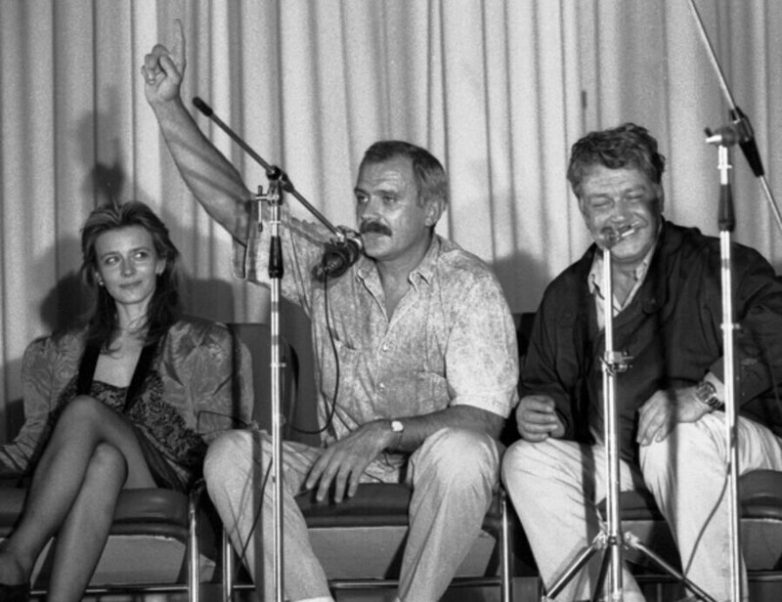 Елена Сафонова, Никита Михалков и Всеволод Ларионов на кинофестивале «Золотой Дюк», 1988 год